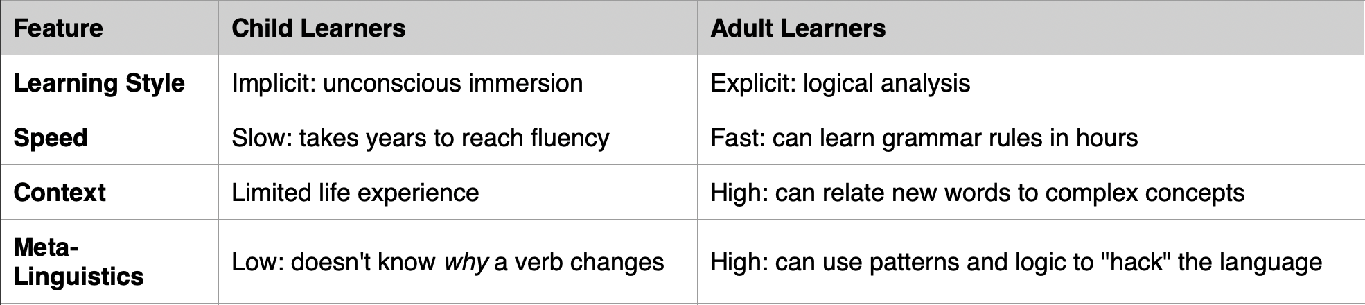 Adults bring a powerful arsenal to the language learning battlefield: