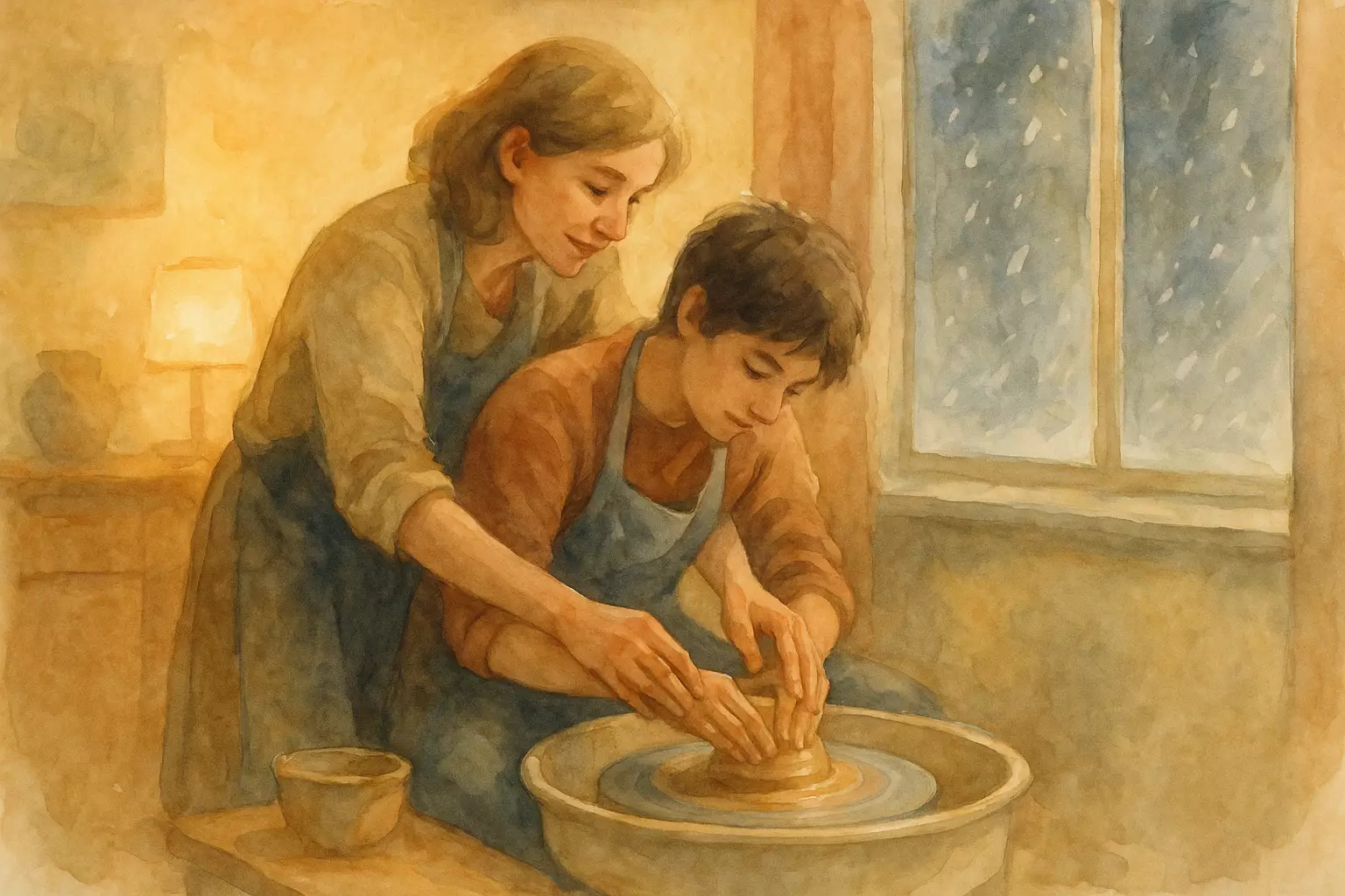 On a dark autumn evening in Tartu, a bored narrator joins a pottery course at the Karlova community house. Guided by the friendly teacher Maarja, they struggle at first, find calm, and leave with a crooked first cup and the wish to return.
