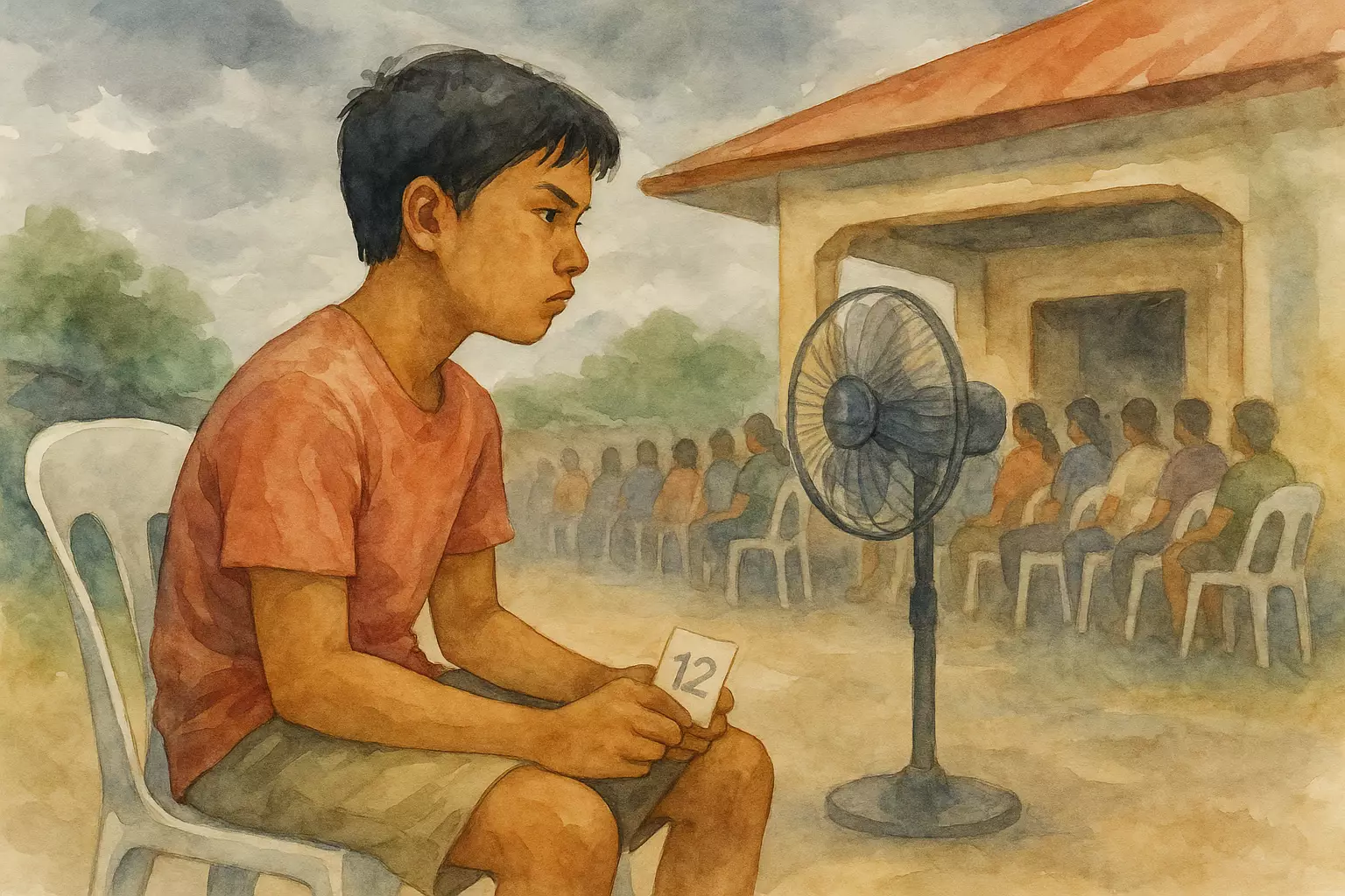 On the last day of voter registration, a young Filipino waits in a long line at the barangay hall, meets fellow registrants, and stays patient thanks to Grandma’s advice, finally getting a claim stub after hours of waiting.