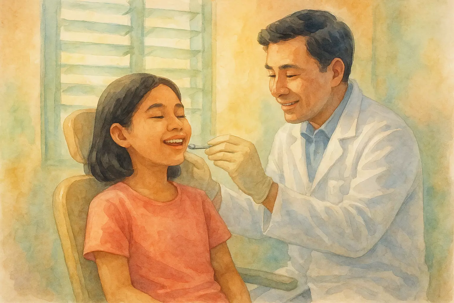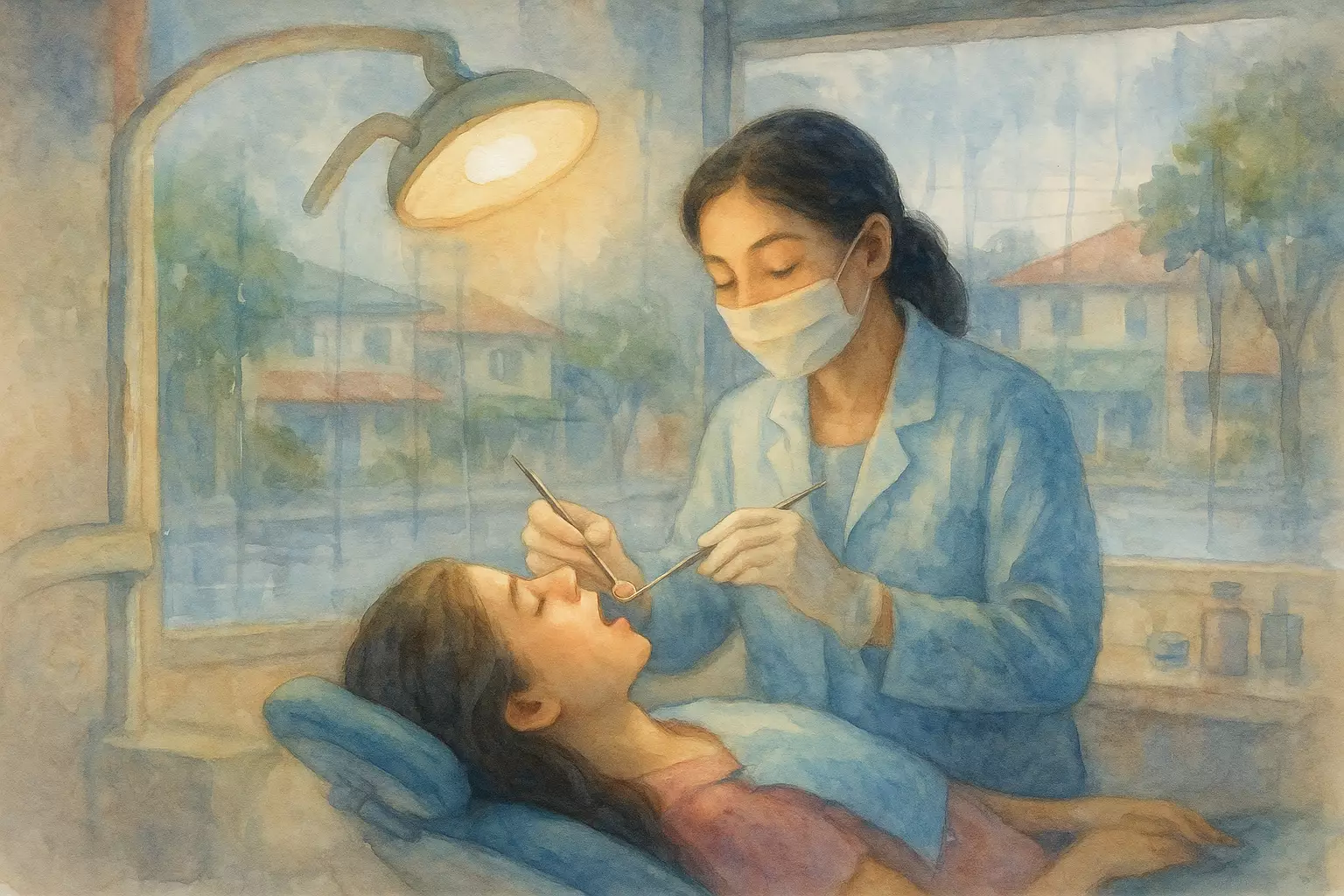 On a rainy afternoon in the Philippines, a young professional visits a small dental clinic near the market to treat a painful cavity. With Doc Marissa’s gentle care, she gets a filling and goes home relieved, promising to cut back on sweet snacks.