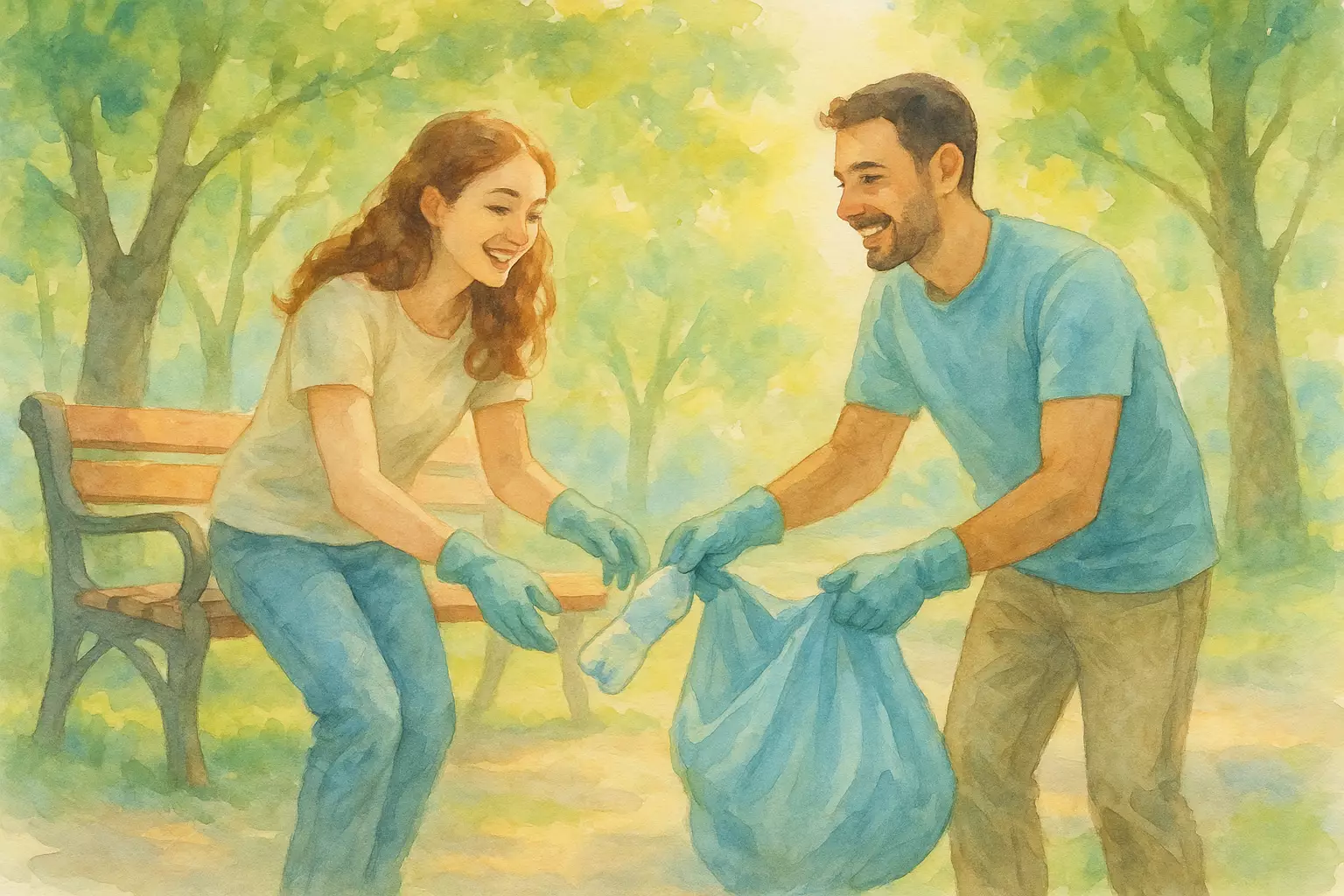 In a small French town, Léa and her friend Karim join neighbors to clean the park. They pick up trash, meet locals, and celebrate with lemonade after the work.