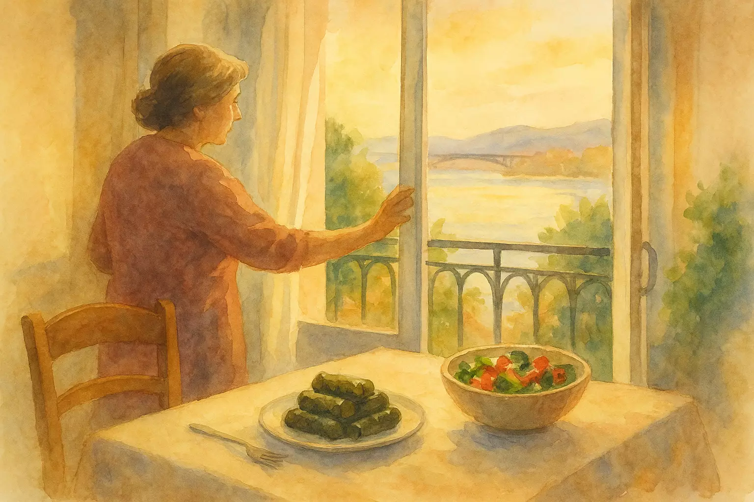 In an Athens apartment at dawn, Niki moves through her carefully crafted morning ritual—coffee, radio, stretches, and a last look at the balcony—before stepping out ready for the day. The routine steadies her mood and sets her pace.