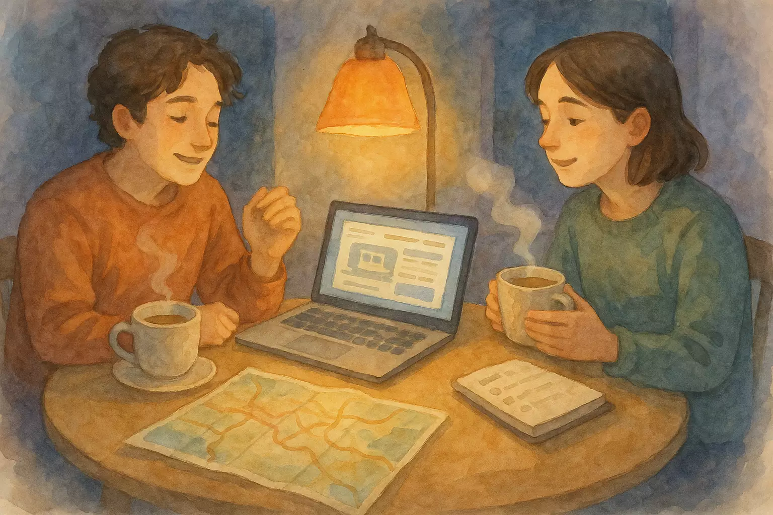 Two friends plan a budget train trip to Yogyakarta. They book tickets, call a homestay, check the weather, make a list, and get ready to leave on Saturday morning.