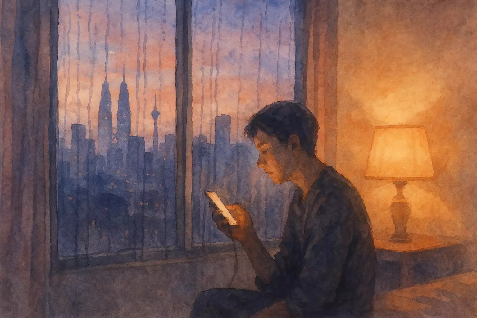 On a rainy evening in Malaysia, a person receives a phone call from an old school friend and they reconnect over memories, regrets, and a plan to meet again. The call heals a rift from the past and brings a quiet warmth back into the narrator’s home.