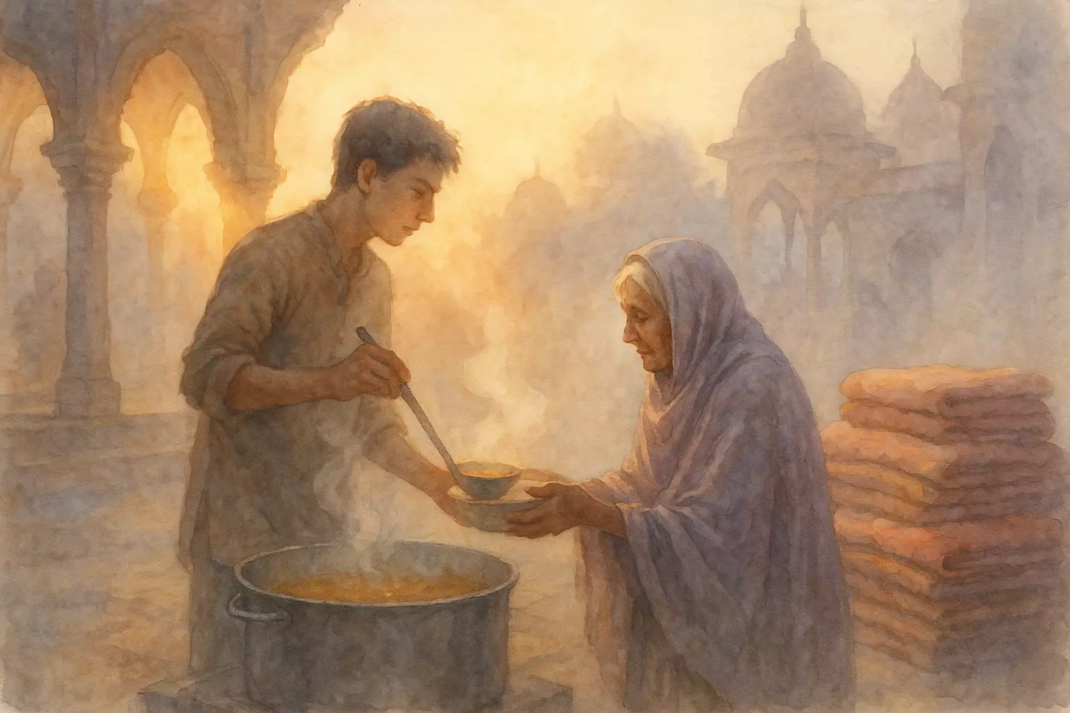 In a foggy Terai town during a cold snap, neighbors set up a volunteer community kitchen at the temple courtyard, pooling small contributions to serve soup and warmth, then carrying the remaining food to a nearby settlement.
