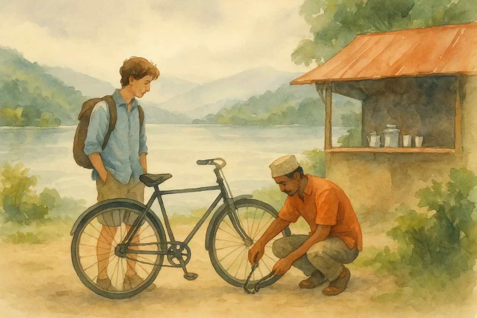 A student staying in Pokhara rents a bicycle to explore the lakeside, faces a minor breakdown, receives help from locals, and learns that kindness makes the trip memorable. He returns the bike late but is treated fairly due to his honesty.