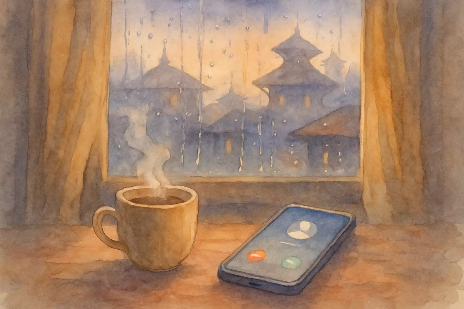 On a drizzly Kathmandu evening, the narrator receives a surprise call from Vimal, a long-lost friend. Their conversation melts years of silence, rekindles campus memories, and ends with a plan to meet at Tundikhel for a morning walk.