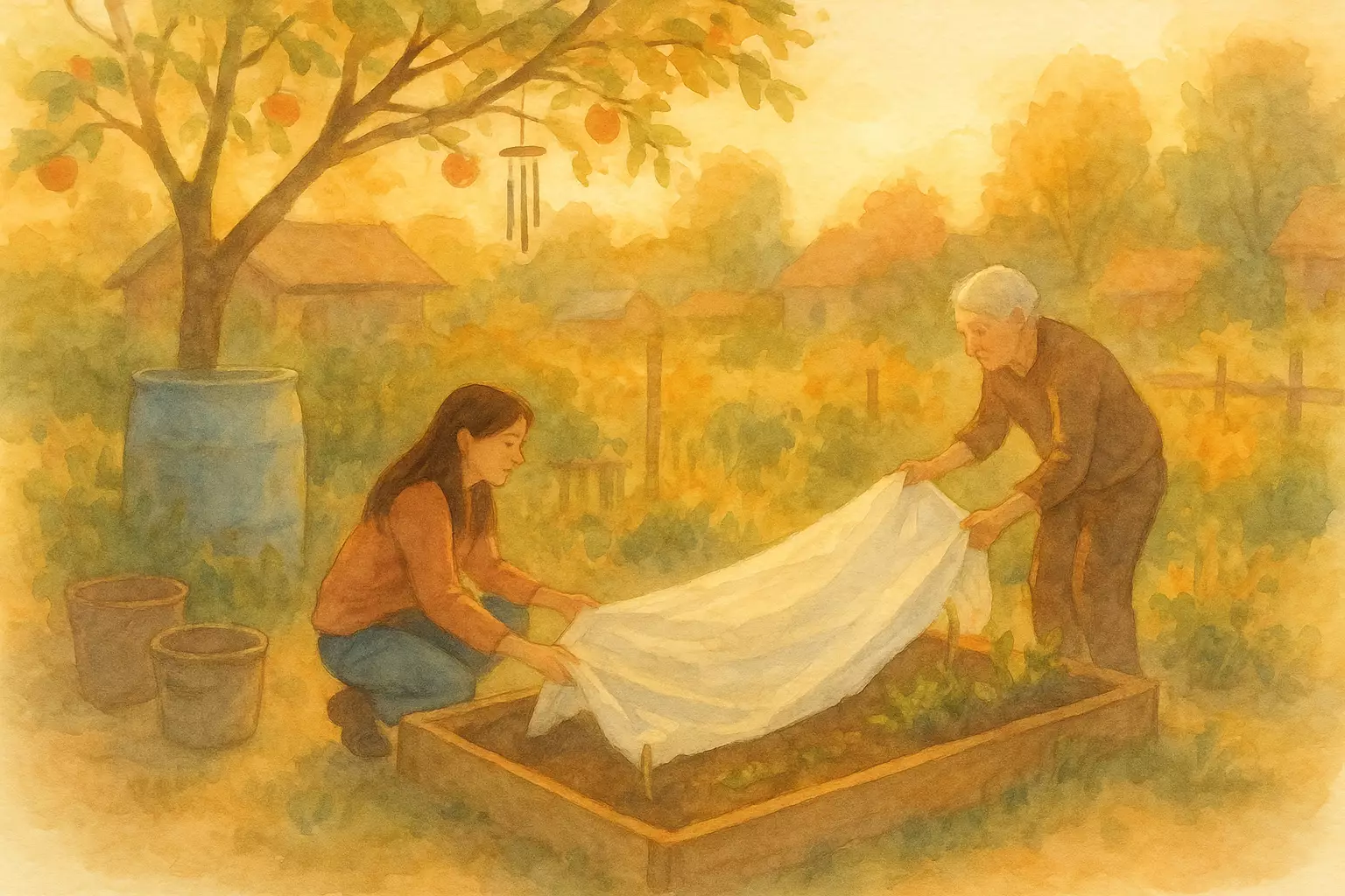 In Oslo, Mina joins a community allotment and, with neighbor Arne's help, learns by trial and error to protect seedlings, fight slugs, and grow tomatoes. By late summer, the garden ties her to the neighborhood and slows her pace.