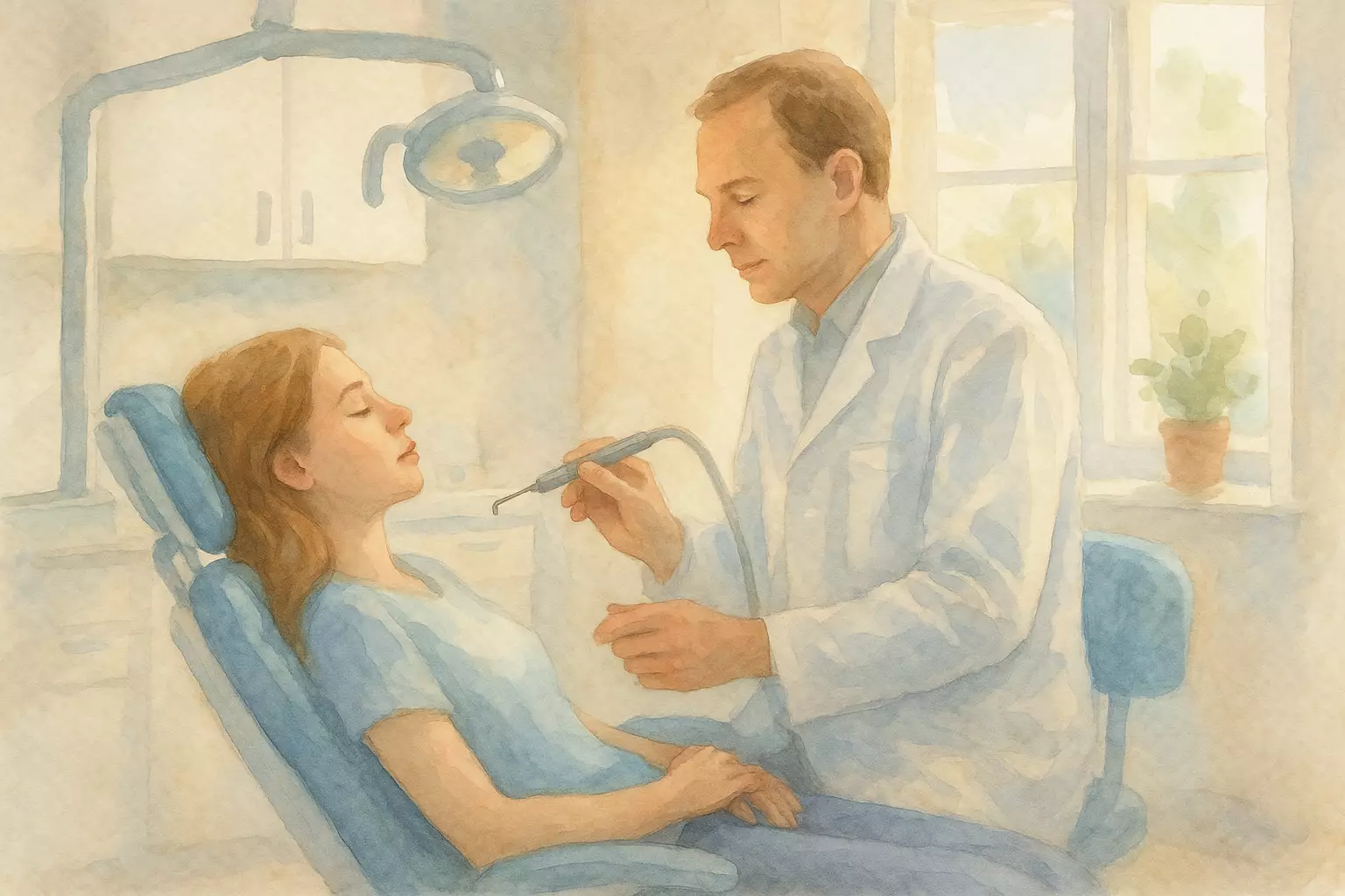 After cracking a tooth on a caramel at the cinema, Sara visits a small neighborhood dentist the next morning. The dentist is calm and fixes the tooth quickly, and Sara heads out relieved.