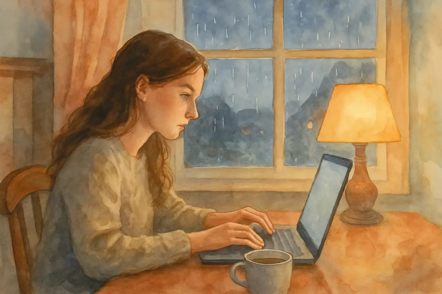 On a rainy Sunday evening in Norway, Mari struggles to write an email to her former Norwegian teacher to ask for a recommendation while also expressing thanks. After drafts and feedback from a friend, she sends it and receives a warm reply.