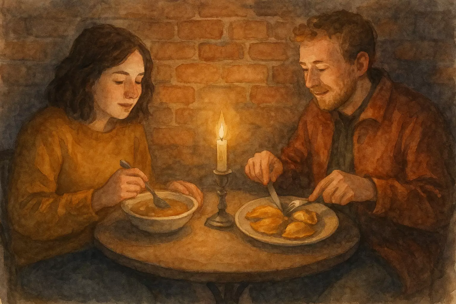Two friends take shelter from the rain in a cozy bistro in Poznań’s Jeżyce, order classic Polish dishes, and experience a brief power outage that makes the evening even warmer. They leave planning to return on Friday for the chef’s best-of-the-day promise.