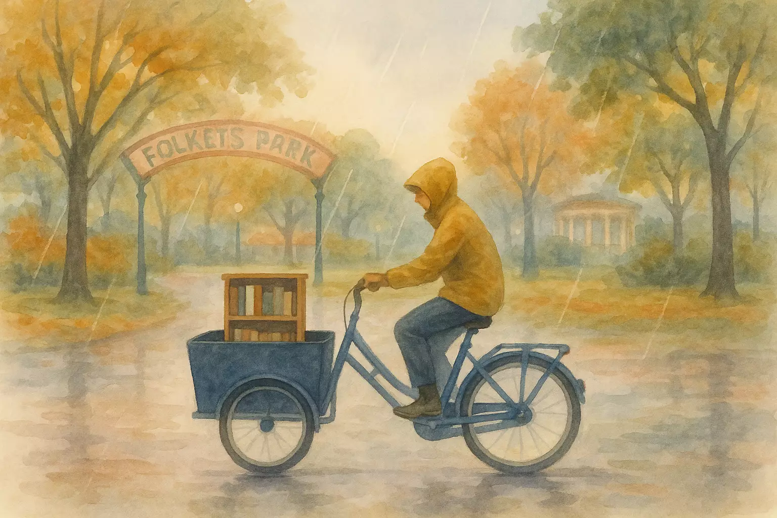 A Malmö resident rents a cargo bike near Möllevången to collect a second-hand bookshelf from Blocket; after a drizzly ride and a small scare, the return goes smoothly and they embrace car-free city life.