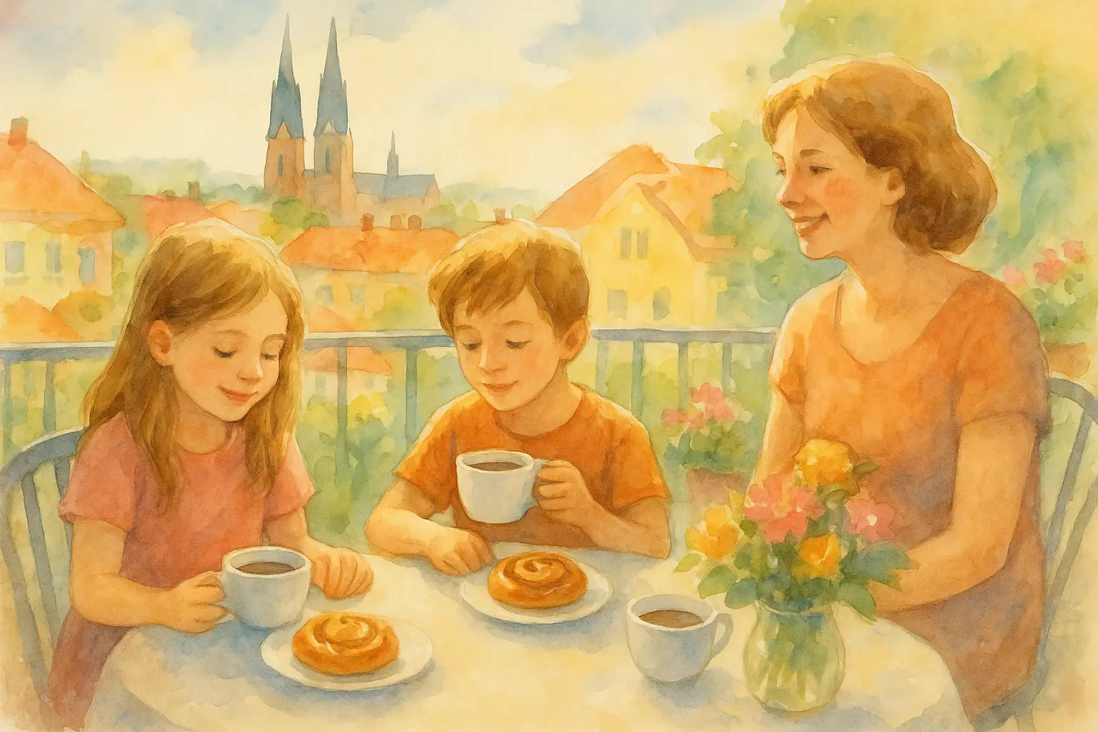 Two siblings take the train to Uppsala to visit their aunt’s family for a Sunday meal and fika. They share food, look at old photos, and head home feeling happy and close to their relatives.