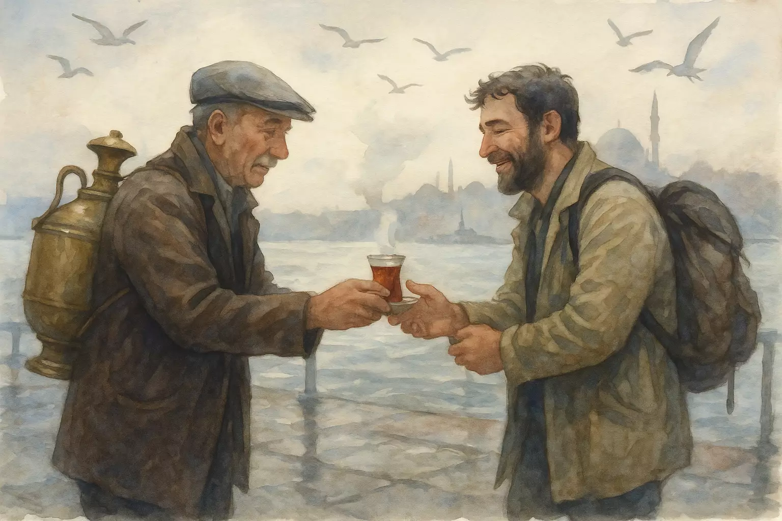 A first-time visitor to Istanbul gets lost while trying to reach the seaside, asks locals for help, and finally finds the tram stop back to the hotel with a tea seller’s guidance. The story follows their small setbacks and sensory clues through unfamiliar streets.