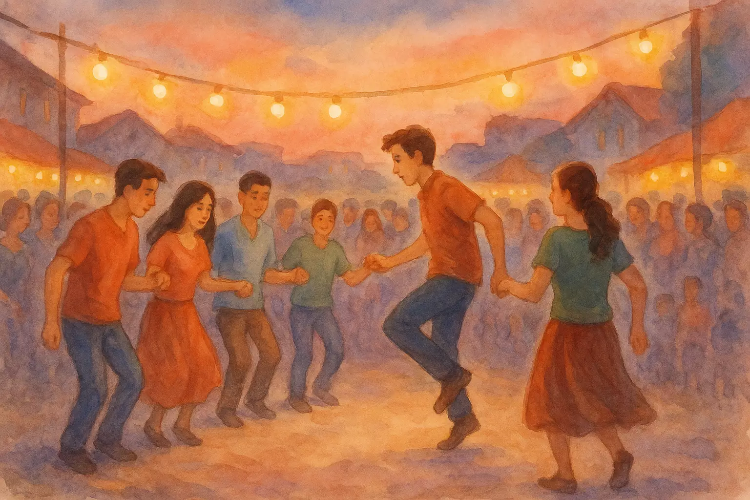 A narrator returns to a neighborhood fair after many years, getting swept up in scents, music, and memories while tasting lokma, joining a halay, and buying a ceramic plate. As night falls with a lantern procession, they feel a warm sense of belonging and promise to return.