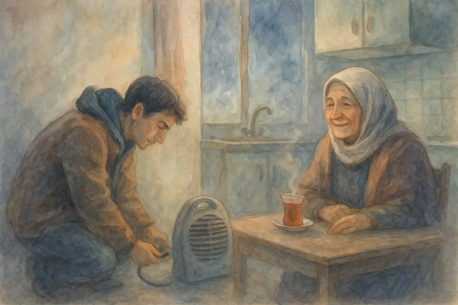 On a snowy evening in Istanbul, a young narrator helps an elderly neighbor, Nermin teyze, after her groceries spill and her power goes out. Together they restore warmth and light, deepening their bond of neighborliness.